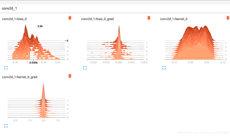 以手写体为例子,我们打开histogram_freq和write_grads,也就是在Tensorboard中保存权值直方图和梯度直方图。