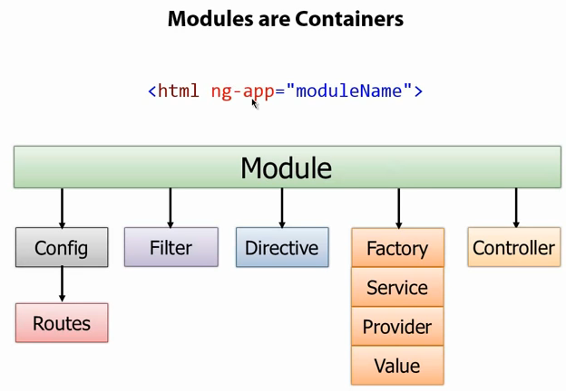 Module就是一个容器,用于管理一个AngularJS应用的各个部分,是AngularJS中很重要的概念。一个AngularJS应用就是一个Module,其作用和C#应用程序中Assembly作用类似。C#中我们通过main函数来bootstrap应用程序。而AngularJS则通过na-app="moduleName"的方式来bootstrap一个AngularJS应用。moduleName就是Module对象的name.