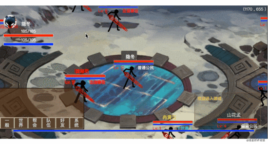 打斗也很简单,就是角色在放技能的时候计算周边其他的角色的距离,从而判定是否击中,然后让血量降低。公告系统,这些都有写,不过定时器太多造成了内存泄露我还得想想怎么优化一下。