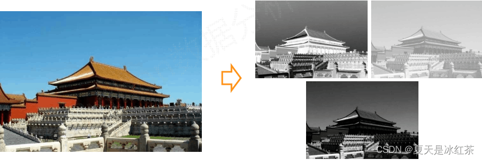 RGB三个颜色通道的变化和叠加得到各种颜色,其中
