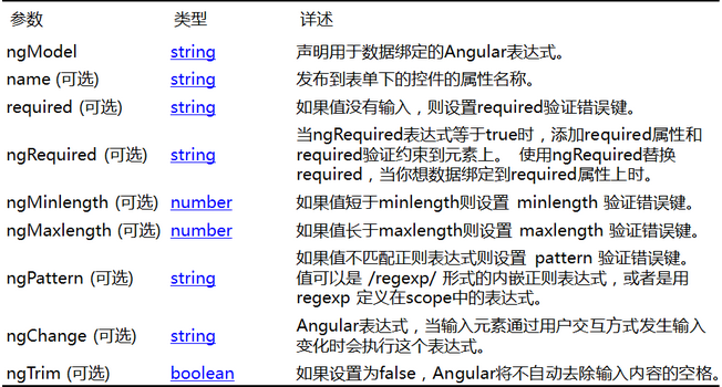 angularJS中提供了许多的验证指令,可以轻松的实现验证,只需要在表单元素上添加相应的ng属性,常见的如下所示: