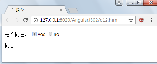 <input type="radio" ng-value="'同意'" ng-model="isAllow" name="allow" />yes