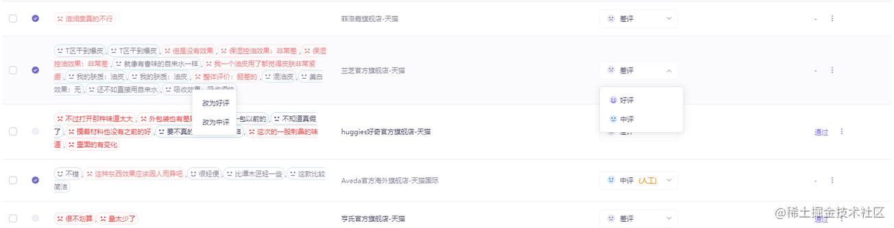 <el-table-column label="情感打标结果" min-width="150">