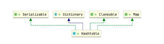 - 继承了Dictionary字典类,Dictionary是声明了操作"键值对"函数接口的抽象类。